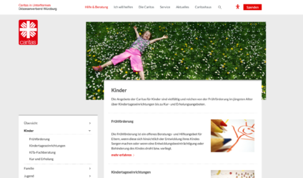 Darüber hinaus entwickelten wir ein einheitliches TYPO3-Template, das für alle Unter- und Folgeseiten der diözesanen Einrichtungen verwendet wird. Es verbindet ein gemeinsames Design mit der Möglichkeit, den individuellen Charakter der einzelnen Organisationen zu bewahren.